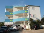a modern kitchen with microwave, coffee machine and fridge, a TV with SAT-receiver, phone, the possibility for internet-access, and air-condition.